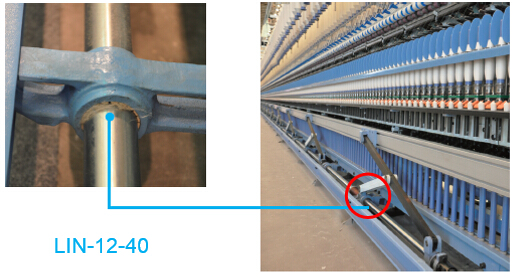 紡織機(jī)械細(xì)紗機(jī)集體落紗裝置采用了剪叉式驅(qū)動(dòng),支撐導(dǎo)桿滑動(dòng)位置原先采用了金屬滾珠直線軸承,但其在紗線毛環(huán)境中經(jīng)常發(fā)生卡死問(wèn)題造成導(dǎo)桿極易拉傷和整個(gè)設(shè)備運(yùn)行故障;紡織機(jī)械設(shè)計(jì)工程師在嘗試了多種滑動(dòng)軸承后選擇了LIN塑料直線軸承后解決了困擾多年的問(wèn)題。LIN塑料直線軸承采用了耐磨專家EPB13工程塑料軸承材料制成,不但可以長(zhǎng)期免潤(rùn)滑而且運(yùn)行無(wú)任何卡滯風(fēng)險(xiǎn);LIN塑料直線軸承工作面采用了斜槽設(shè)計(jì)不但能及時(shí)排除摩擦面上的異物而且允許軸在軸向運(yùn)動(dòng)的同時(shí)可伴隨輕微轉(zhuǎn)動(dòng)。