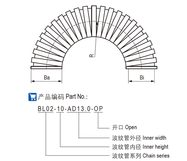 BL02波紋管適用于眾多通用機(jī)械行業(yè),出色的耐低溫和自阻燃性能還適用于汽車(chē)工業(yè)。此系列波紋管可在低溫下保持較好的抗沖擊性能,并具有良好的耐候性。