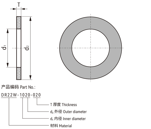 DR22 耐磨墊片由三層組成,結(jié)合了低摩擦與高承載特性的滑動(dòng)層和高強(qiáng)度玻璃纖維填充的中心承載層;