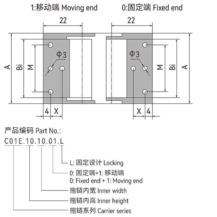 *A1|A2|A3|A4訂購預(yù)裝配拖鏈請注明安裝方式