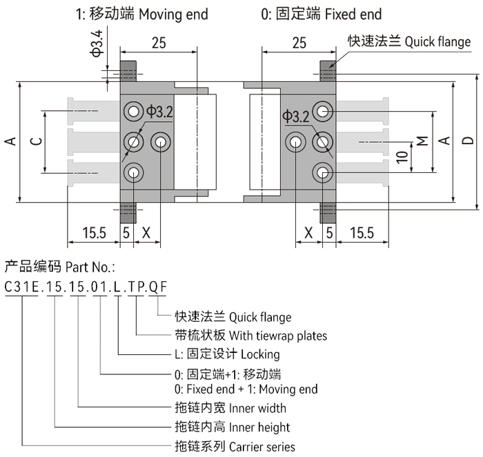 *A1|A2|A3|A4訂購預(yù)裝配拖鏈請注明安裝方式