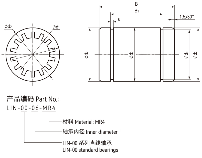 ● 低成本全塑料壓配合直線軸承,無需卡簧;