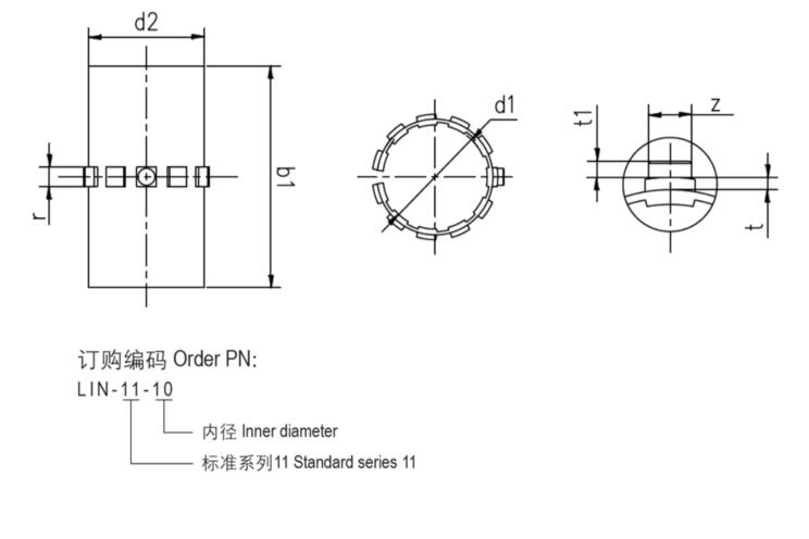 | 產(chǎn)品編碼 | 軸徑 [mm] | D H7 [mm] | B h10 [mm] | r+0.5 [mm] | t+0.05 [mm] | Z+0.2 [mm] | ![]() |