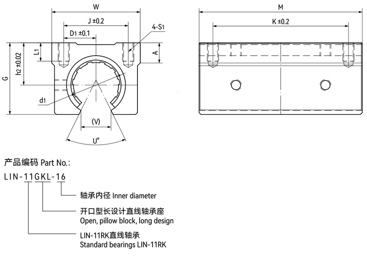 ●內(nèi)部安裝2個LIN-11RK開口型直線軸承
