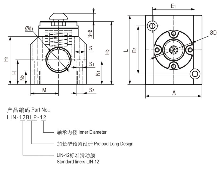 ● 安裝2個(gè)LIN-12短型設(shè)計(jì)滑動(dòng)膜