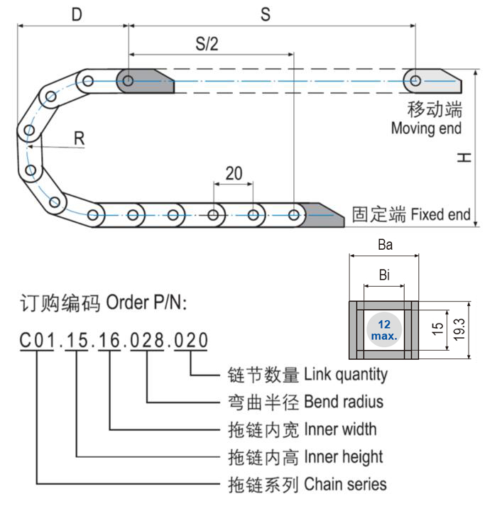 C01.15微型塑料拖鏈體積極小,基于一片式設(shè)計(jì)重量輕特別適用于高速運(yùn)動。C01.15微型塑料拖鏈適用于較小安裝空間,多種尺寸規(guī)格可選。