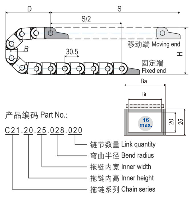 C21.20微型可打開式電纜拖鏈體積較小,基于兩片式設(shè)計(jì)重量輕特別適用于高速運(yùn)動(dòng);C21.20微型電纜拖鏈適用于較小安裝空間,3種內(nèi)寬規(guī)格可選...