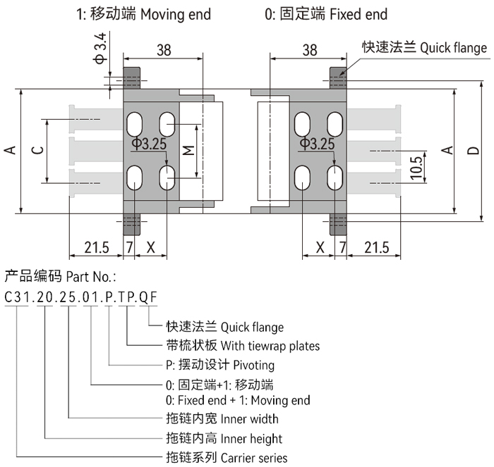 *A1|A2|A3|A4訂購預(yù)裝配拖鏈請注明安裝方式