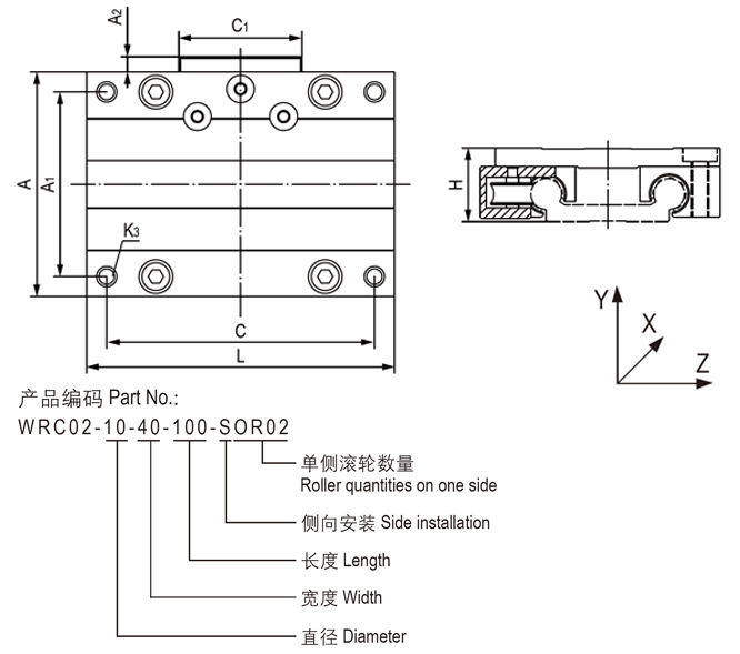 ● 配合WR02導(dǎo)軌側(cè)向安裝